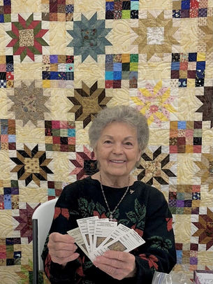 The final raffle tickets are sold during the luncheon and following the meal, closing of the auction, and Mistletoe Bag drawings, the lucky winner of the Scholarship Quilt is announced.